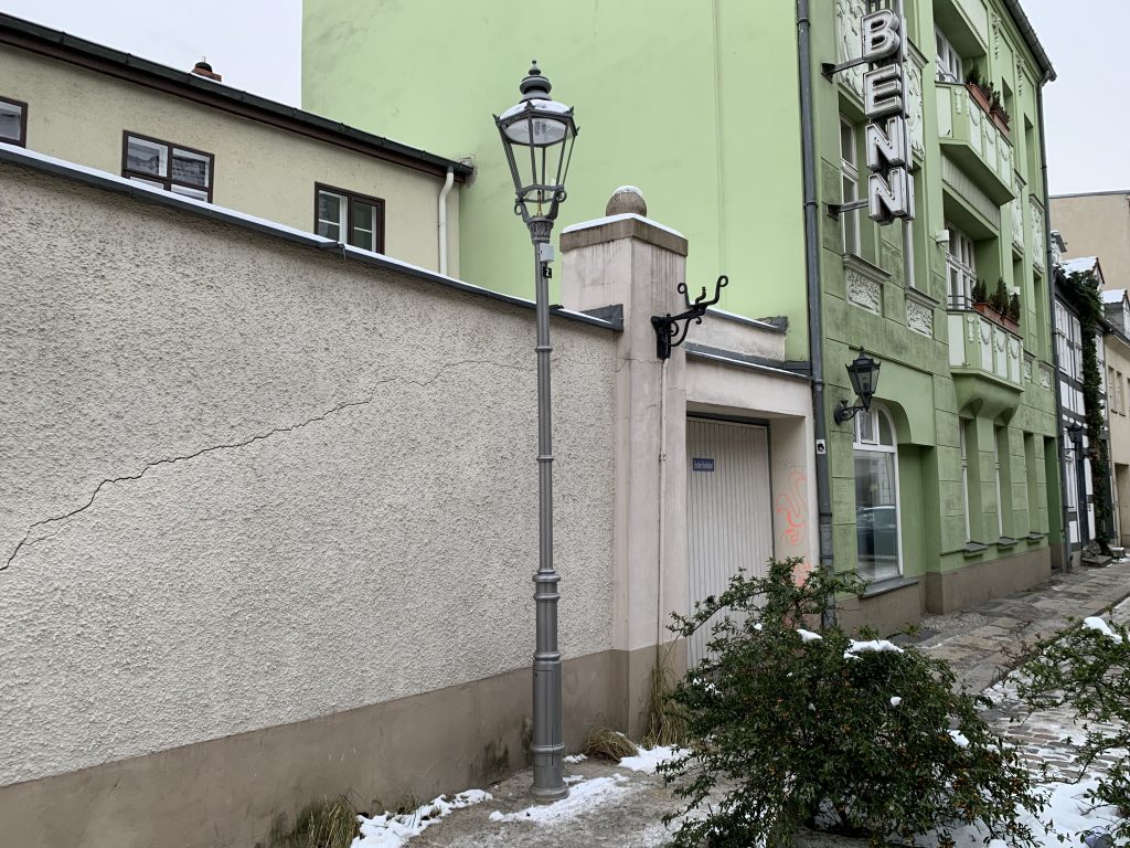 Nun konnte eine Lösung gefunden werden: Ende des letzten Jahres wurden zwei neue LED-Laternen in der Ritterstraße platziert. Sie befinden sich in unmittelbarer Nähe zu den vorherigen Laternen und sind in historischer Optik gestaltet. Zwei weitere neue Leuchten wurden bereits zuvor in der Jüdenstraße errichtet. Auch hier, direkt an der Kreuzung zur Ritterstraße, musste eine alte, direkt am Haus angebrachte Laterne demontiert werden.
